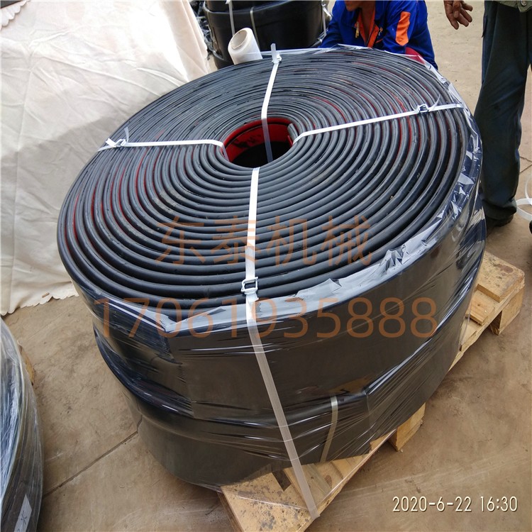 4、皮帶機(jī)防溢裙板密封效果:防溢裙板采用直板+裙邊雙層密封一體化結(jié)構(gòu),直板緊貼導(dǎo)料槽側(cè)幫,底部與皮帶接觸,防止物料外溢;裙邊外翻起,可在一定角度內(nèi)旋轉(zhuǎn),靠橡膠板彈力,自動(dòng)跟蹤皮帶,始終與皮帶保持緊密接觸,密封性能優(yōu)異。裙邊主體采用一次性一體熱硫化方式制成,結(jié)構(gòu)緊湊有效,結(jié)實(shí)耐用。