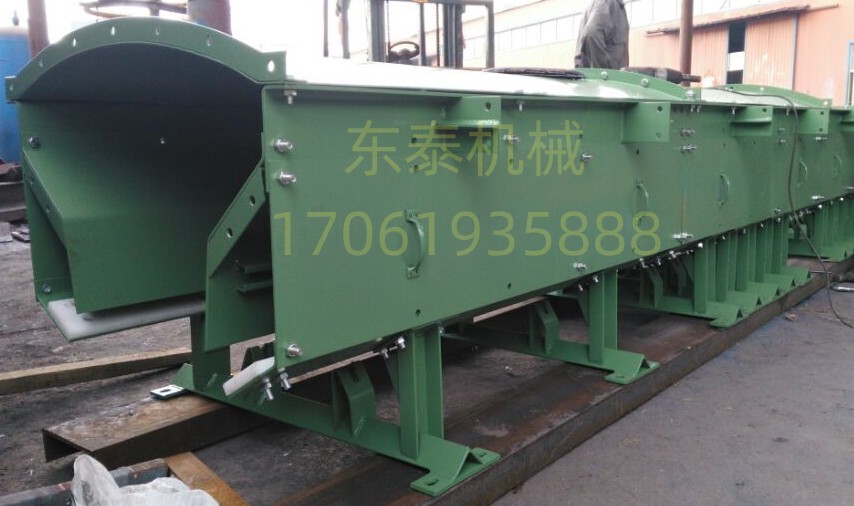 導(dǎo)料槽的結(jié)構(gòu):導(dǎo)料槽可分為加防溢裙板型和全封閉型;如果是全密封型,由上中下三部分組成,中間側(cè)板與輸送機(jī)機(jī)架連接,為固定部分,上頂蓋及下底板分別同側(cè)板通過(guò)螺栓連接,可很方便的進(jìn)行拆卸,以便安裝和維修。東泰整個(gè)導(dǎo)料槽形成封閉式結(jié)構(gòu),當(dāng)風(fēng)塵渦流對(duì)導(dǎo)料槽形成沖擊風(fēng)壓時(shí),粉塵決不會(huì)四溢擴(kuò)散。