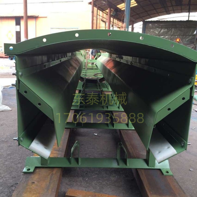 2、防灑料防溢裙板與滑板組成的復(fù)合結(jié)構(gòu)可保證皮帶的平穩(wěn)運(yùn)行、抑制由于皮帶在托輥間跳動(dòng)引起的灑料,大大降低日常清潔的工作量和物料。