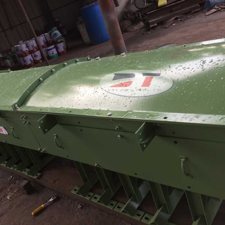 導(dǎo)料槽可分為加防溢裙板型和全封閉型;如果是全密封型,由上中下三部分組成,中間側(cè)板與輸送機機架連接,為固定部分,上頂蓋及下底板分別同側(cè)板通過螺栓連接,可很方便的進(jìn)行拆卸,以便安裝和維修。