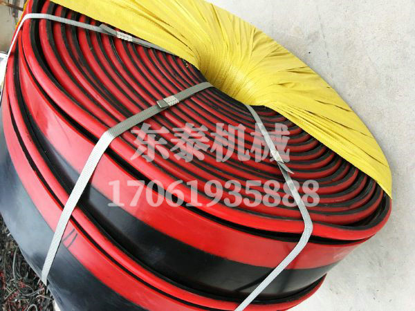 4、皮帶機(jī)防溢裙板密封效果:防溢裙板采用直板+裙邊雙層密封一體化結(jié)構(gòu),直板緊貼導(dǎo)料槽側(cè)幫,底部與皮帶接觸,防止物料外溢;裙邊外翻起,可在一定角度內(nèi)旋轉(zhuǎn),靠橡膠板彈力,自動(dòng)跟蹤皮帶,始終與皮帶保持緊密接觸,密封性能優(yōu)異。裙邊主體采用一次性一體熱硫化方式制成,結(jié)構(gòu)緊湊有效,結(jié)實(shí)耐用。防溢裙板安裝方法編輯多護(hù)防溢橡膠裙邊的安裝方式特別方便,只需確認(rèn)安裝位置后,將專用固定槽采用焊接,鉚接,自攻螺絲等任一方式固定在落料槽外邊,再將多護(hù)防溢裙邊背面的T型膠塊滑入固定槽即可。