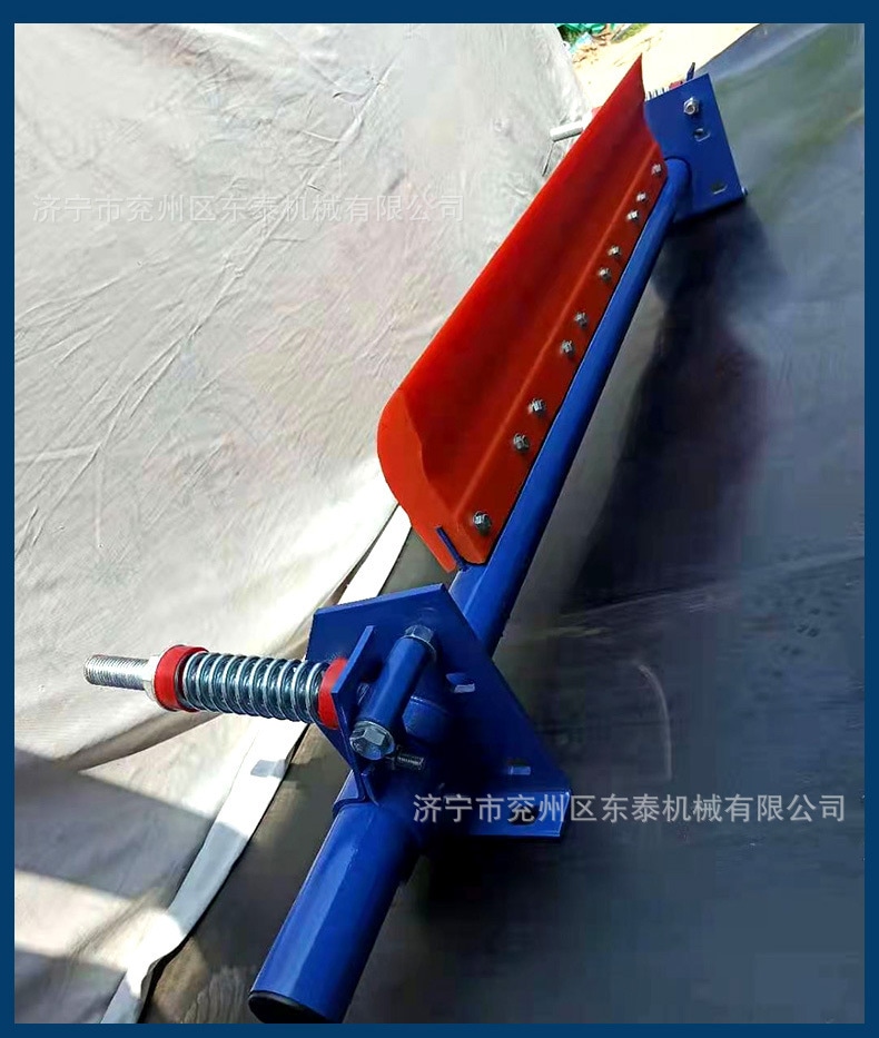 刮刀采用聚氨酯復(fù)合材料,利用模具一體加硫成形,刮刀面平整,直線度好,低摩擦、高耐磨、高強(qiáng)度,具有穩(wěn)定的刮料效果。可有效清除殘留皮帶上之細(xì)粒、濕粘物料。預(yù)壓式調(diào)壓器確保刮刀與皮帶的穩(wěn)定接觸壓力。刮刀面由多塊窄幅聚氨脂刮板組成,具有空形緩沖孔,對(duì)各種皮帶都有良好跟隨性。