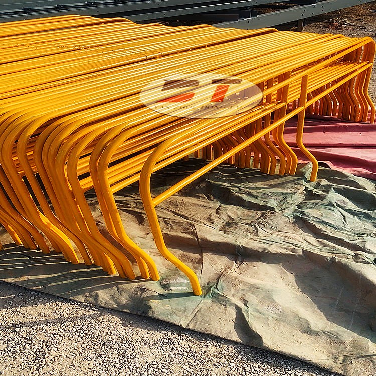 常用鋼材所制,如圓鋼管,方鋼管或壓型鋼板。表面處理工藝:全自動(dòng)靜電粉末噴涂(即噴塑)或噴漆。室外用耐撞護(hù)欄的表面處理所用原料為耐水性的材料。制成耐撞護(hù)欄外形美觀,且不易生銹。