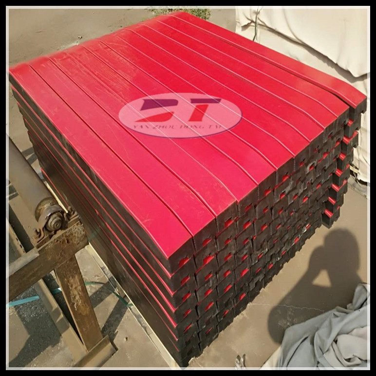 對于特殊復(fù)雜工況,也可以提供920萬超高分子聚乙烯板材的緩沖條,磨損率不大于0.1,更加耐磨。緩沖條的橡膠層,天然橡膠含量高,彈性好,非常柔韌,吸收沖擊能力強(qiáng),自我清潔功能強(qiáng)。緩沖條采用熱硫化工藝,在高溫高壓狀態(tài)下使高彈性橡膠與高分子聚乙烯板材高強(qiáng)度粘接,牢固可靠,永不分離。